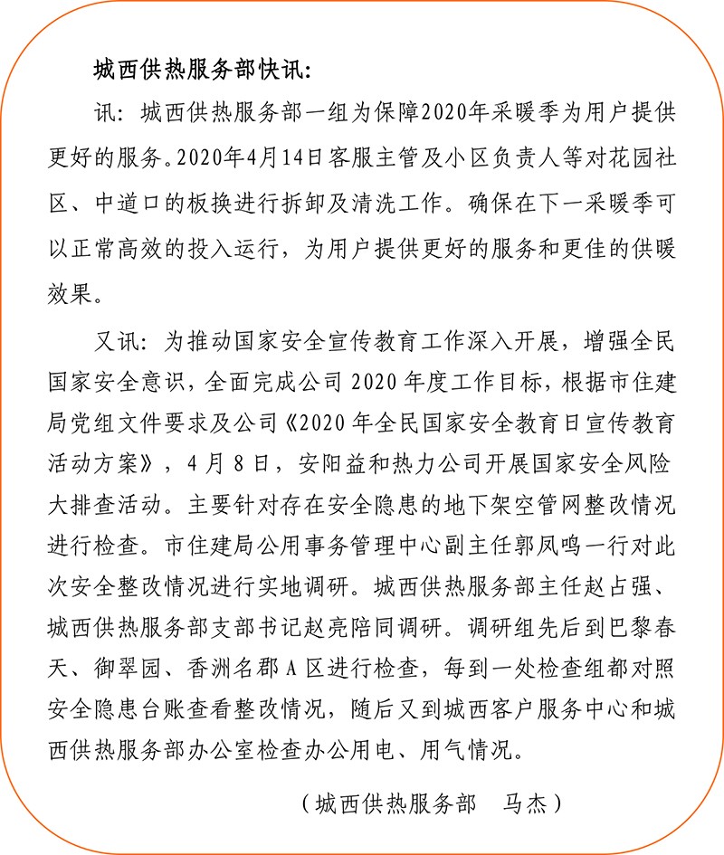 為宣傳國家安全教育日,4月10日益和熱力公司在LED屏上打出了相關宣傳語